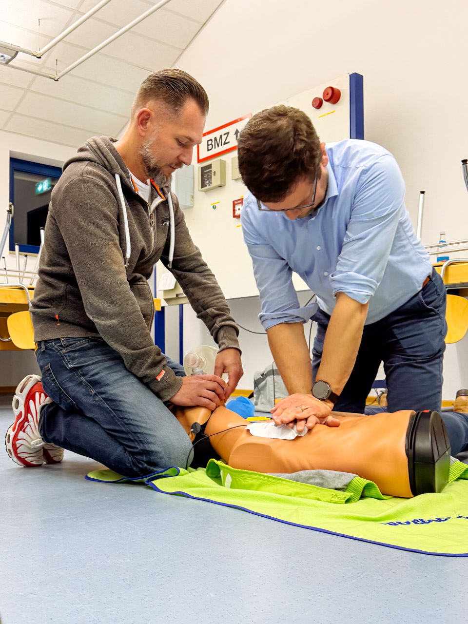 Am gestrigen Abend nahmen 19 Kameraden und Kameradinnen an der Basic Life Support AED-Rezertifizierung teil. Dabei wurde das Wissen rund um Reanimation, Beatmung und den Einsatz des Defibrillators aufgefrischt. Zusätzlich nahmen wir unseren Reanimationsrucksack genauer unter die Lupe und verbesserten unsere Fähigkeiten im Umgang mit den verschiedenen Materialien.