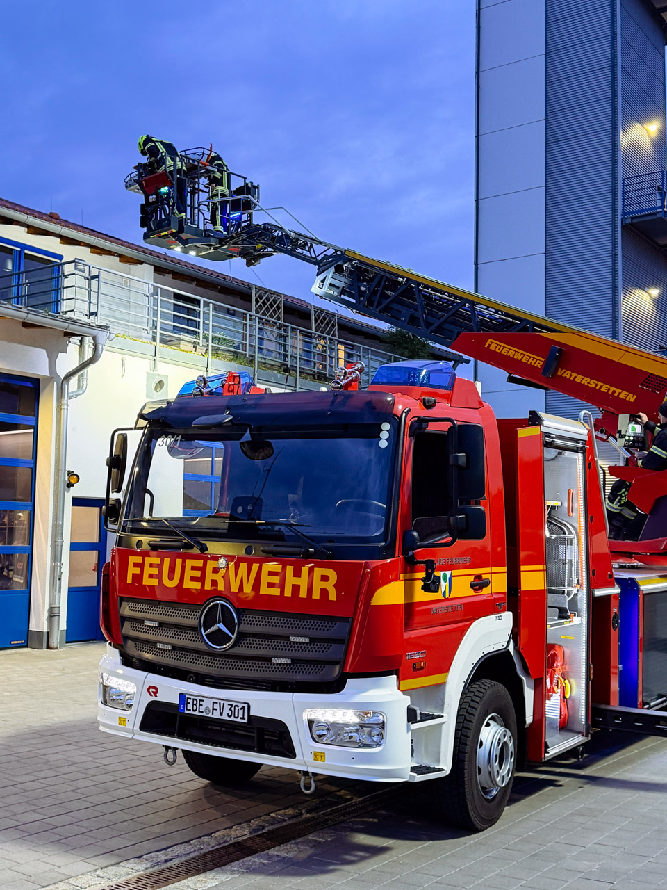 Die DLA(K) 23/12 ist weit mehr als „nur“ eine Leiter. Mit ihrem 30 Meter langen Leiterpark erreicht sie eine Nennrettungshöhe von 23 Metern bei 12 Metern Ausladung. Der Korb bietet Platz für bis zu fünf Personen sowie vielfältige Ausrüstung – eine Kombination, die ein breites und anspruchsvolles Einsatzspektrum ermöglicht.