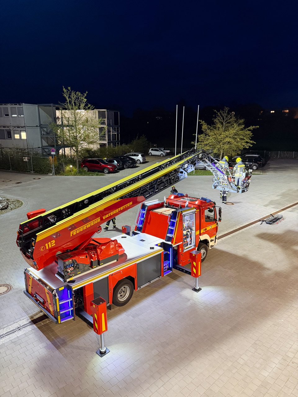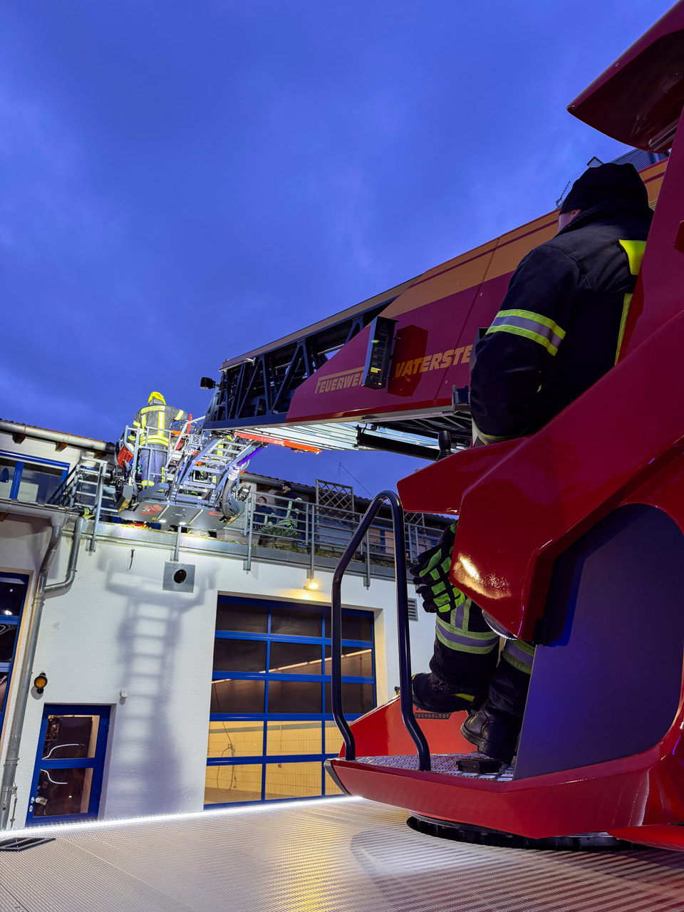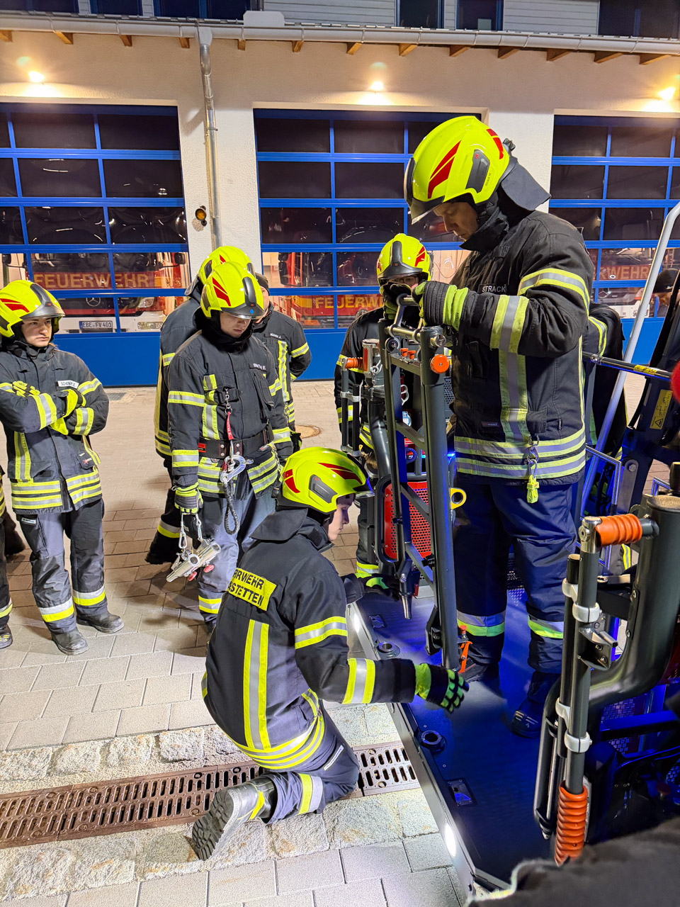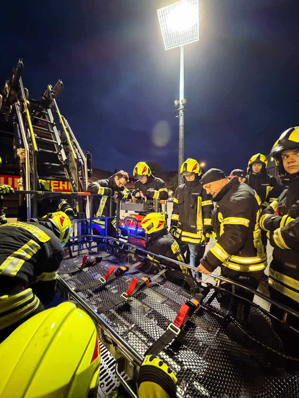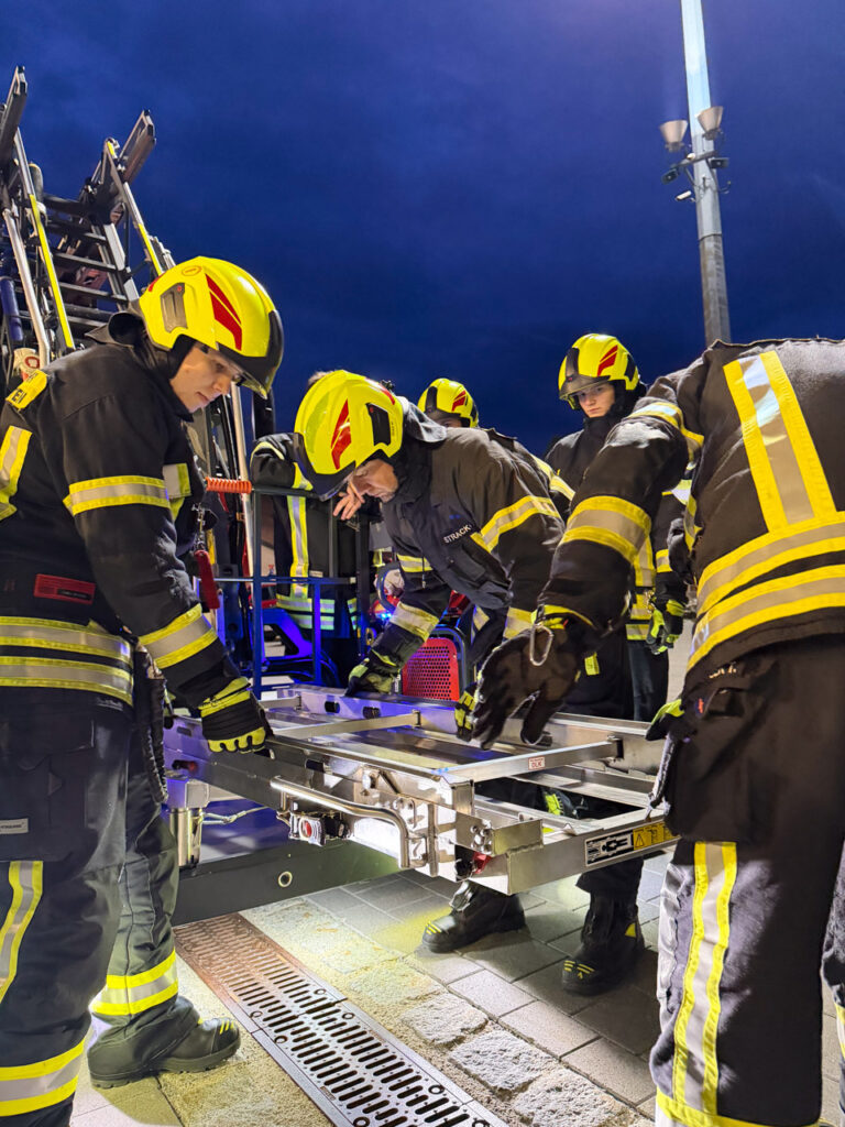 Um dieses Potenzial im Einsatz sicher und effizient abrufen zu können, sind regelmäßige Übungen unerlässlich. Neben der reinen Fahrzeugkunde lag der Schwerpunkt diesmal auf der sicheren Personenrettung – einer der häufigsten Einsätzfälle der Drehleiter.