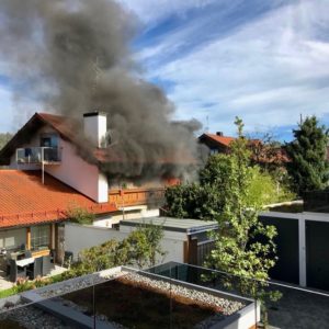 Eine ursprünglich gemeldete Rauchentwicklung in einem Vaterstettener Wohnhaus, entwickelte sich am Sonntag Nachmittag zu einem Großeinsatz der Feuerwehren. Bei Eintreffen der ersten Einsatzkräfte stellte sich heraus, dass sich der Brand, ausgehend von einem Garagenanbau, bereits auf die Fassade sowie den Dachstuhl ausgebreitet hatte.