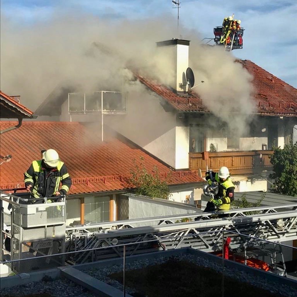 Der Einsatzleiter der Feuerwehr Vaterstetten veranlasste daraufhin eine umfangreiche Nachalarmierung. Unter Atemschutz wurde das Gebäude nach Personen abgesucht, sowie der Fassadenbrand gelöscht.