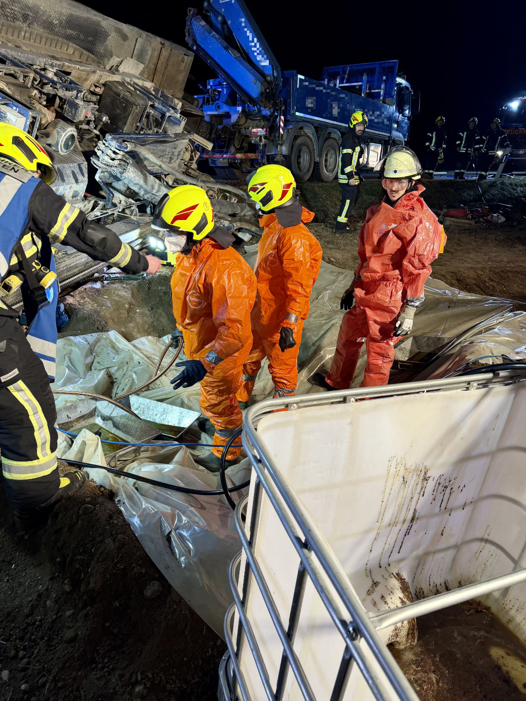 Verletzt wurde glücklicherweise niemand. An der Baumaschine wurde jedoch ein Tank beschädigt, wodurch Hydrauliköl ins Erdreich austrat.