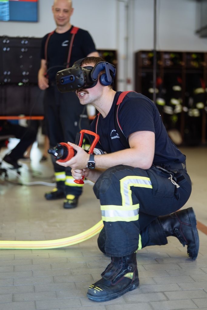 Als besondere Übungsstation war dabei erstmals der Virtual Reality Strahlrohrtrainer des Landkreises Ebersberg in Vaterstetten zu Gast: Mit VR-Brille und digitalem Strahlrohr ausgestattet wurde unsere Fahrzeughalle plötzlich zum Schauplatz zahlreicher Brandereignisse – dank unserer gut ausgebildeten Ehrenamtlichen auch in der virtuellen Welt schnell im Griff 💪