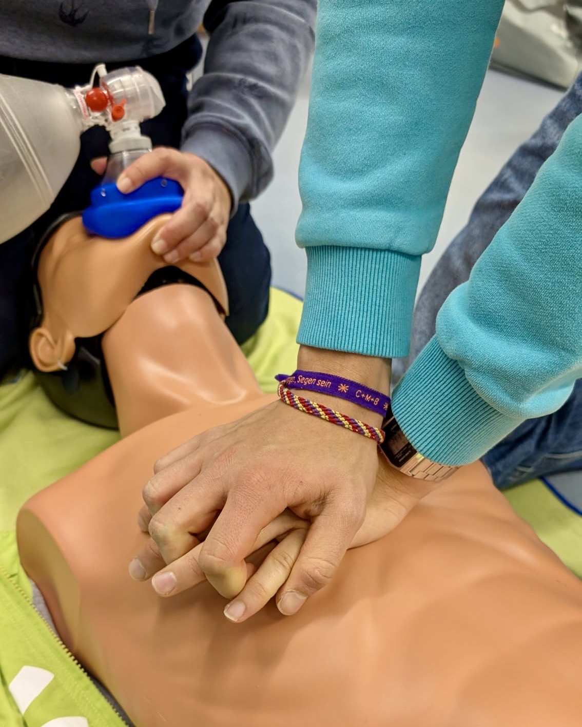 Vergangenen Freitag drehte sich bei uns alles um das Thema Reanimation. Gemeinsam haben wir das richtige Vorgehen im Notfall trainiert – vom Erkennen eines Herzstillstands über die Herzdruckmassage bis zum Einsatz des Defibrillators (AED).